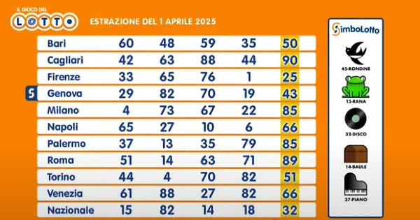 Ecco le estrazioni del Lotto di oggi 1° aprile 2025