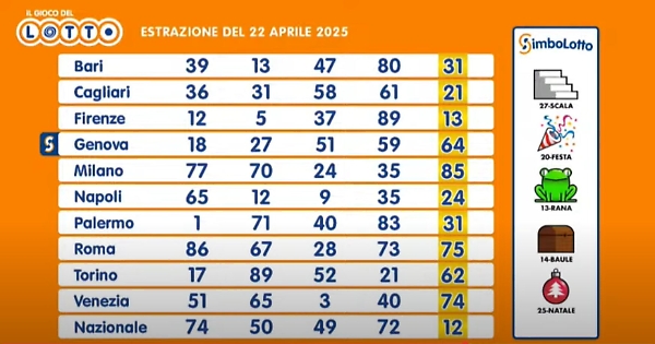Ecco le estrazioni del Lotto di oggi 22 aprile 2025