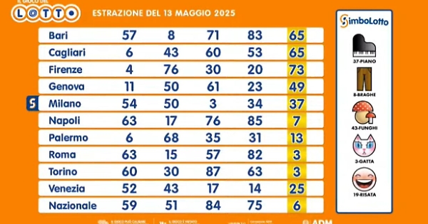 Ecco le estrazioni del Lotto di oggi 13 maggio 2025.