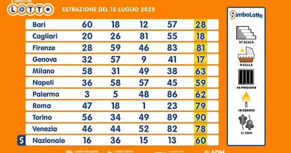 Ecco le estrazioni del Lotto di oggi 15 luglio 2025: