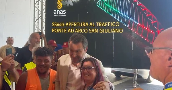 Selfie e strette di mano per Matteo Salvini all'inaugurazione del ponte ad arco San Giuliano sulla Strada degli Scrittori: il video