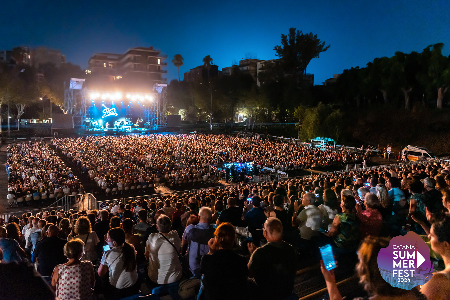 L’arena del Giardino Bellini si è trasformata in un vero e proprio tempio, accogliendo spettatori provenienti da Sicilia e Calabria con diecimila persone che, hanno assiepato le poltroncine dello spazio realizzato da Comune e gestito perfettamente dagli organizzatori, nei due concerti inseriti nel cartellone di spettacoli estivi del “Catania Summer Fest 2024”