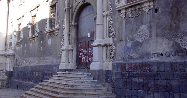 Sporcizia e degrado davanti la Chiesa di San Benedetto nella splendida Via Crociferi, emblema de barocco catanese, patrimonio dellUnesco. È vergognoso!