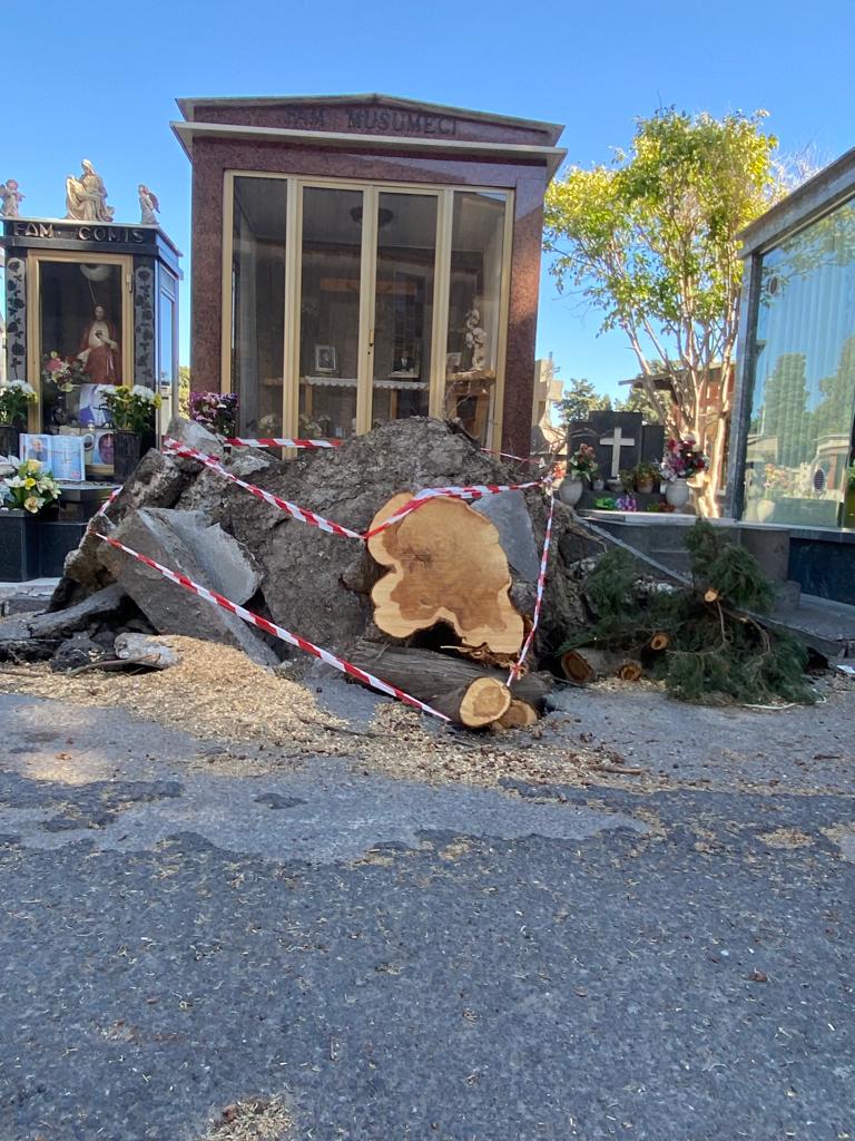 si aggiunge quella di un cittadino siracusano che ci ha inviato un video che mostra un albero secolare abbattuto e non rimosso all'interno del cimitero comunale di Siracusa, a discapito dell'incolumità dei visitatori