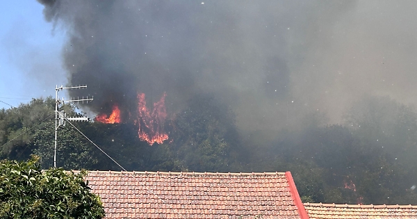 Sospinto dal vento, il fronte del fuoco sta rapidamente avanzando nonostante l'intervento dei alcuni mezzi dei vigili del fuoco