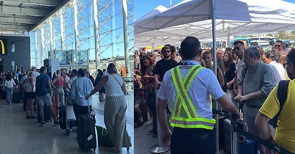 L’altra faccia dell’aeroporto e’ quella del terminal provvisorio realizzato dall’Areonautica Militare che in queste tre settimane di emergenza ha cercato di sopperire nella gestione delle partenze. Nelle tensostrutture, così come fuori lungo i marciapiedi che collegano il Terminal A con quello C, i passeggeri sono in attesa che qualcuno degli addetti di scalo chiami a voce o con il megafono il volo in partenza. Vacanzieri spaesati e in alcuni casi spazientiti dalla perenne mancanza di informazioni. Scene viste e riviste in queste settimane.