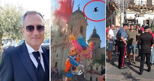 Un uomo è morto e la moglie è rimasta ferita durante i festeggiamenti del Santissimo Salvatore, Patrono di Militello in Val di Catania. La coppia è stata colpita alla testa da un tubo "spara coriandoli" che era stato piazzato all’uscita della chiesa nel centro del paese. I festeggiamenti sono stati sospesi. Sul posto sono