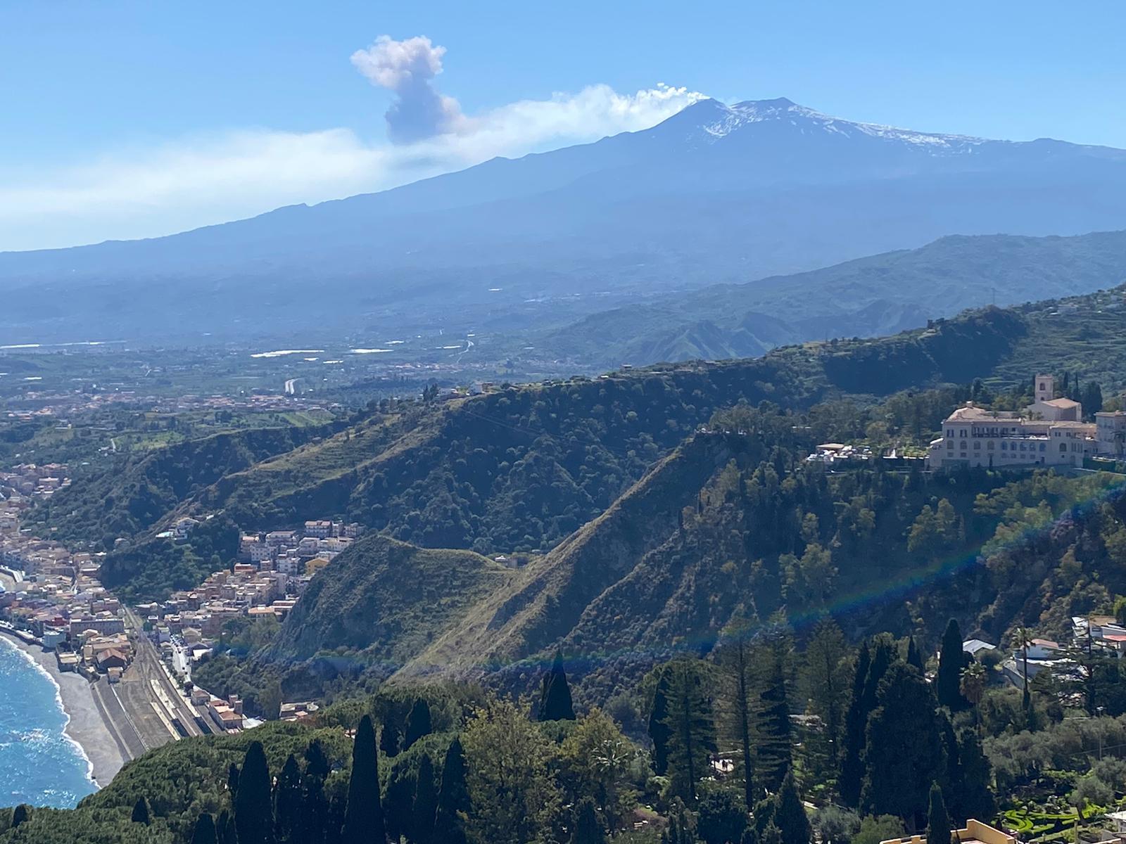 L'Etna torna a dare spettacolo con un forte e veloce sbuffo di cenere visibile anche da Taormina