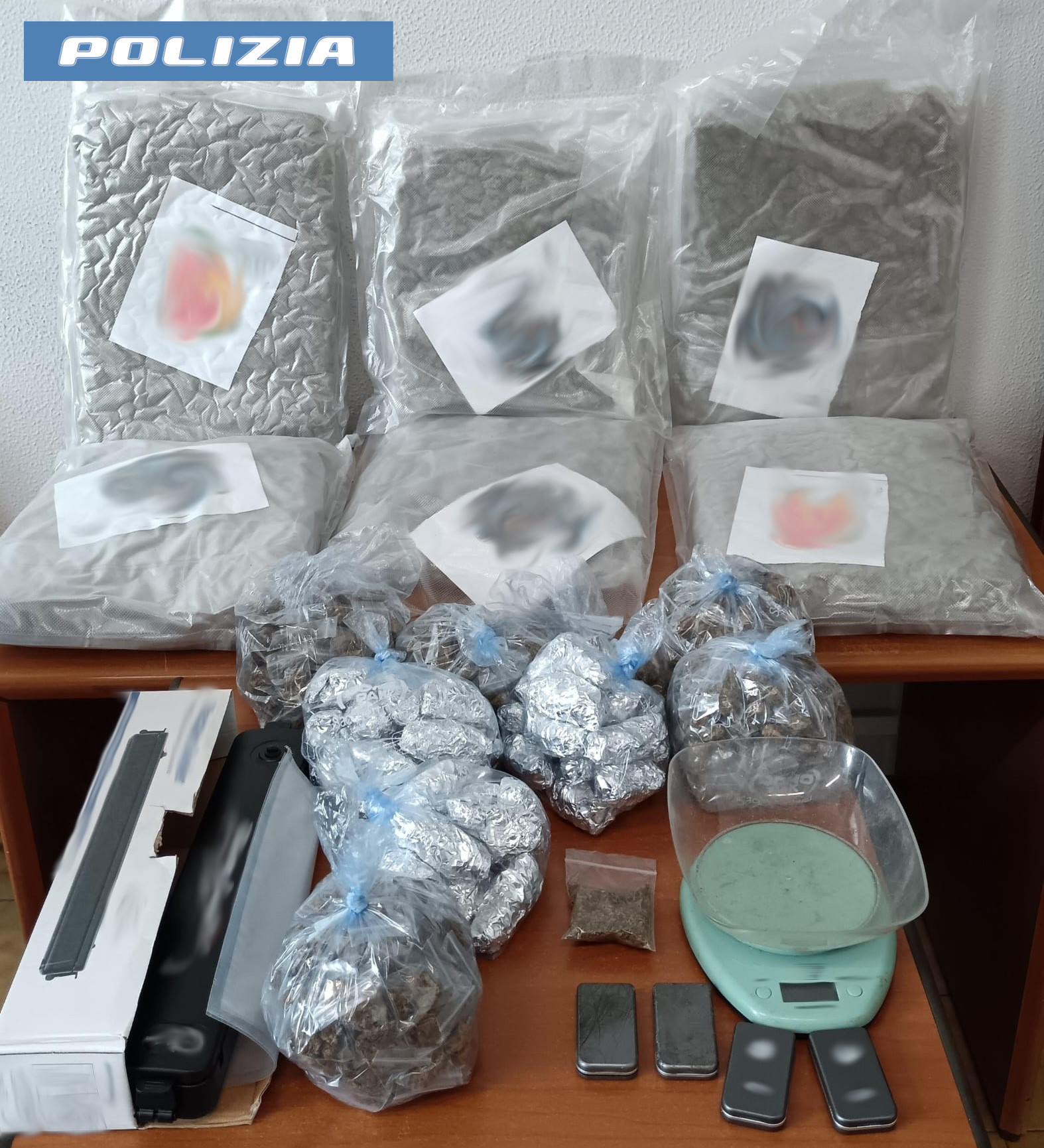 Nel garage c’erano invece nove sacchi in cellophane, con all’interno 514 dosi di marijuana, per un peso complessivo di 1,080 kg, una bilancia da cucina e quattro bilancini elettronici di precisione, e sei buste sottovuoto con all’interno marijuana per un peso di 6,250 kg. Complessivamente l’attività ha permesso di rinvenire 7,3 chili di droga. Il 22enne è stato quindi arrestato per detenzione ai fini di spaccio di sostanze stupefacenti e posto dal pm agli arresti domiciliari in attesa del giudizio direttissimo. Dopo il processo il ragazzo è stato trasferito in carcere anche perché su di lui pendeva anche un’altra condanna a due anni di reclusione sempre per reati in materia di stupefacenti.