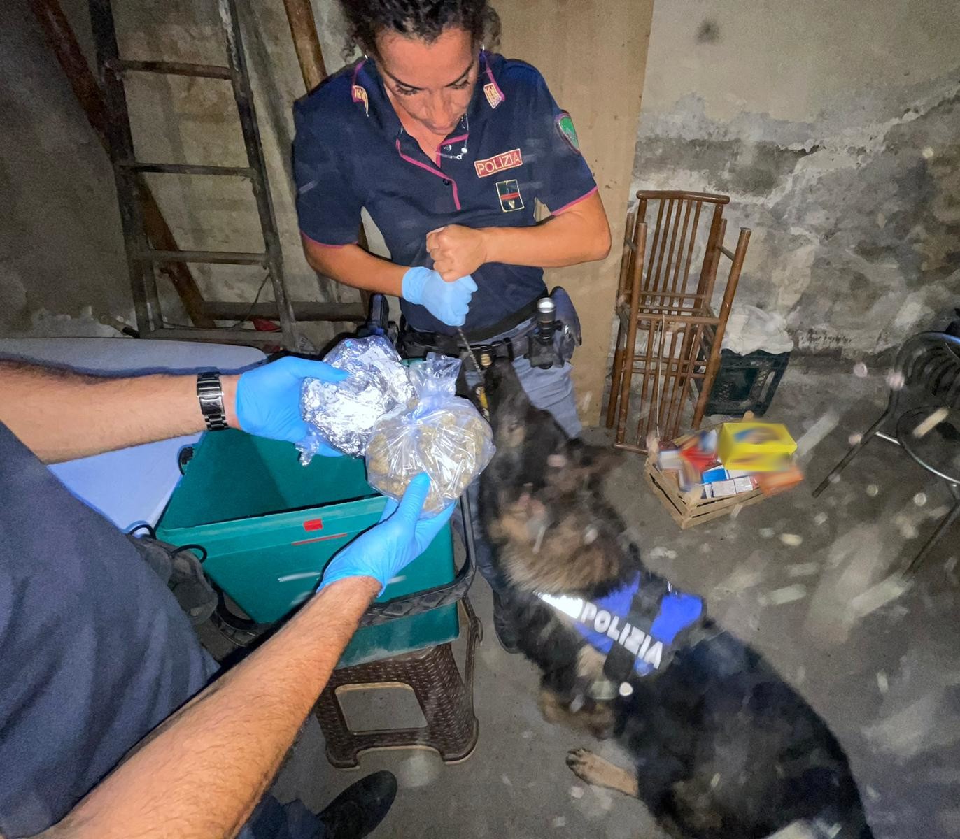 Il controllo antidroga dei poliziotti nel quartiere di Librino e precisamente in via Fossa della Creta ha avuto successo grazie anche al cane Ares che ha segnalato con insistenza un garage ai suoi conduttori.