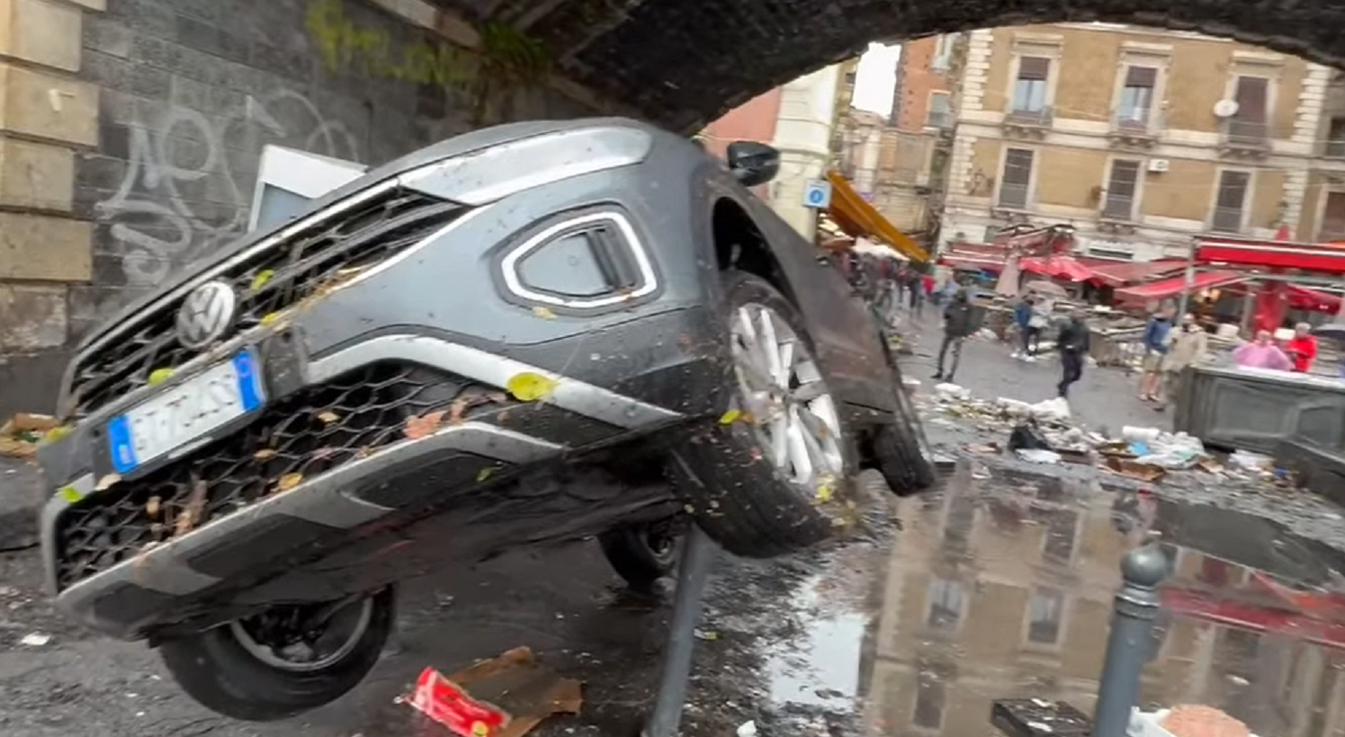 Maltempo, a Catania è successo l'inverosimile: dalla moto trascinata in via Etnea all'auto sollevata alla Pescheria