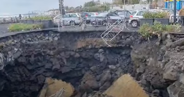 Una voragine di dimensioni gigantesche, e impressionanti, si è aperta in piazza del Tricolore sul Lungomare a Catania. E' molto probabile, ma la causa andrà accertata, che le intense piogge di venerdì scorso abbiano provocato un vero e proprio crollo dell'asfalto, probabilmente indebolito anche dalle continue onde delle mareggiate dei giorni scorsi.