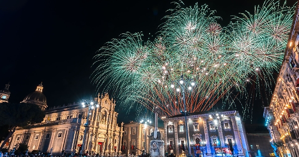 S. Agata, il cielo di piazza Duomo si illumina con i fuochi da “sira ‘o tri” e Catania si avvicina all'abbraccio con la patrona