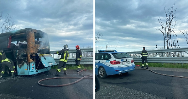 Le fiamme sono divampate a bordo di un autobus che viaggiava in direzione Messina, nel tratto compreso tra Acireale e Giarre. Le cause dell'incendio sono ancora in corso di accertamento.