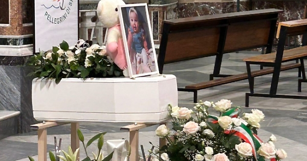 La piccola bara è stata accolta fuori dalla chiesa da scroscianti applausi e dal lancio di palloncini bianchi. E poi il silenzio.