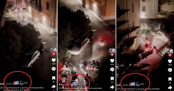 Guardando i video postati da alcuni degli indagati sui loro profili TikTok (come quello di Simone Scalia “Tigna” a cui è stato dedicato l’inchino), la bandiera a strisce di cui parla il pentito sarebbe quella cubana.