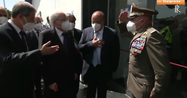 PALERMO - Applausi per il Capo dello Stato Sergio Mattarella al suo arrivo nel padiglione 20 dell’hub vaccinale della Fiera del Mediterraneo di Palermo. Il Presidente sta girando il padiglione con il presidente della Regione siciliana, Nello Musumeci, il sindaco di Palermo, Leoluca Orlando, il commissario per l’emergenza Covid di Palermo, Renato Costa, il direttore generale dell’Asp, Daniela Faraoni, e il dirigente generale dell’assessorato alla Salute, Mario La Rocca. Presente anche il generale Maurizio Scardino, comandante dell’Esercito in Sicilia.