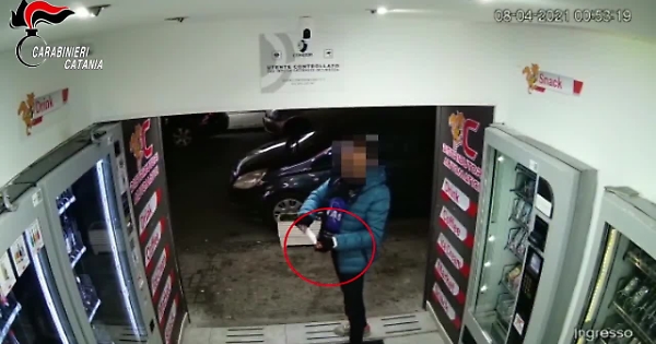 Dalle immagini è possibile vedere l’uomo, che poco prima aveva invitato un altro avventore ad allontanarsi da quel luogo: «Esci che devo fare una cosa, esci!!! …» gli ha detto prima di far ingresso all’interno del locale munito di una bottiglia e, dopo averne versato il liquido sui distributori automatici, appiccare il fuoco mediante una miccia dandosi quindi ad immediata fuga.