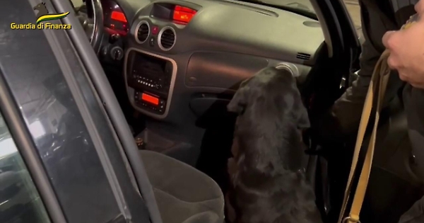 Durante la perquisizione del mezzo grazie all’intervento del cane antidroga Elisir i finanzieri hanno trovato la sostanza stupefacente in un doppiofondo