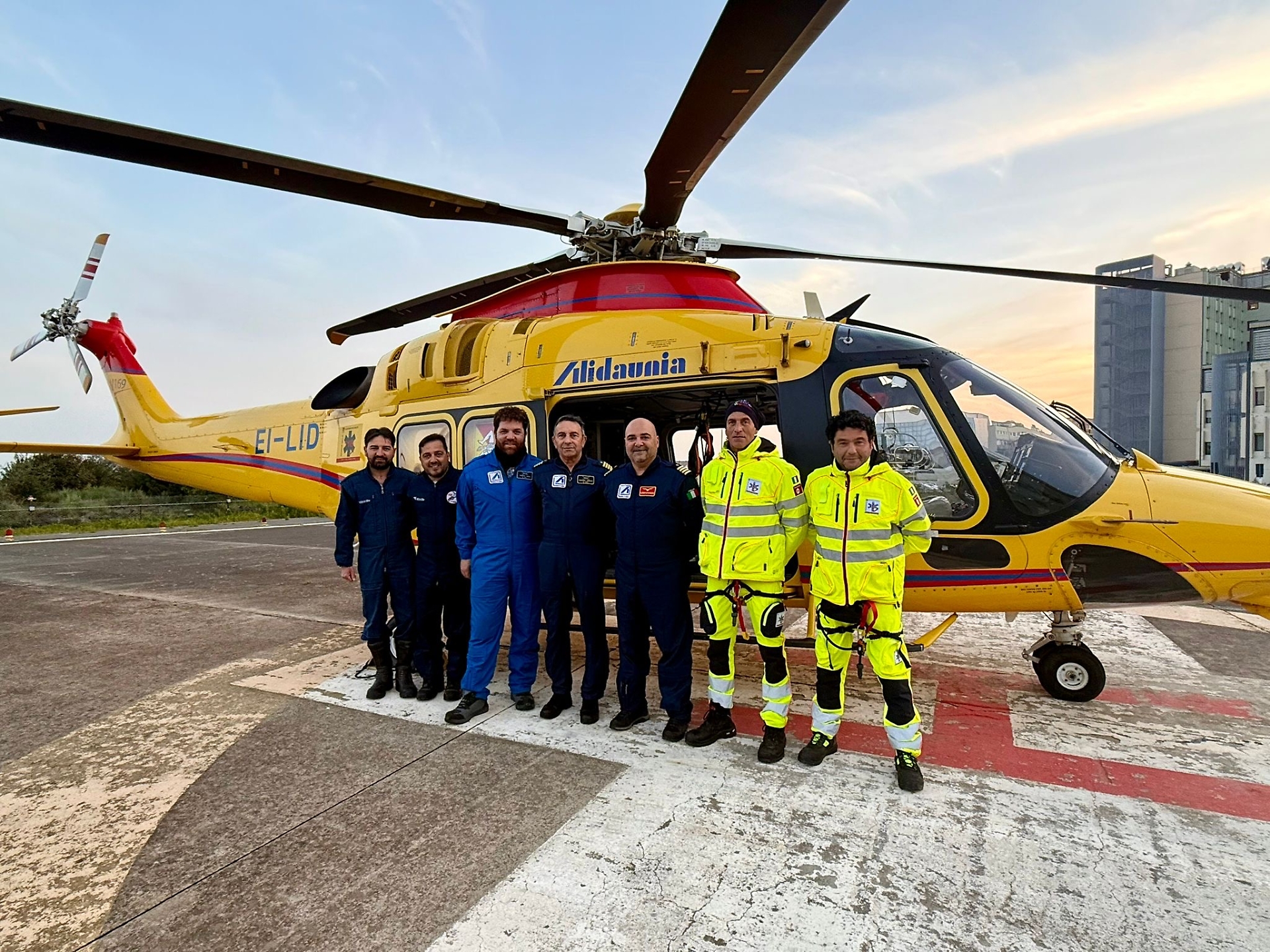 Dell’équipe catanese fanno parte Alessio Maria Pannuzzo ed Enrico Pecchia (comandanti pilota), Salvo Sanfilippo (medico anestesista rianimatore), Marco Iorio (tecnico), Mirco Sorce (infermiere), Cosimo Ferlito e Giancarlo Belfiore (operatori antincendio).