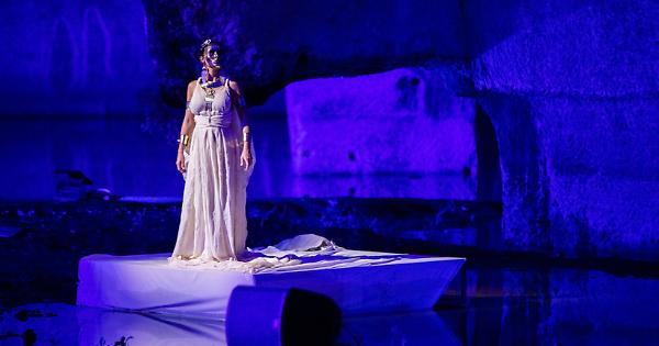 Le grotte del parco archeologico della Neapolis che diventano boschi, fiumi, cieli stellati, mare e sorgenti lasciano senza fiato gli spettatori che, oltre ad ammirare e diventare parte attiva dello spettacolo, scoprono scorci nuovi dell'area archeologica in un suggestivo itinerario tra Latomie illuminate di dorato e alberi secolari.