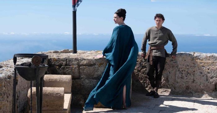 Ritroviamo poi, tracciate dalla potente colonna sonora di Ludwig Goransson (che ha firmato anche "Oppenheimer"), brevi scene fra le altre, del Cavallo di Troia, di Ulisse con alcuni compagni che in una grotta si ritrovano davanti Polifemo o ancora in nave nel pieno di una tempesta fino a Penelope che tenendo fra le mani il volto del marito gli chiede: «Promettimi che tornerai», e Ulisse risponde «e se non ci riuscissi?».