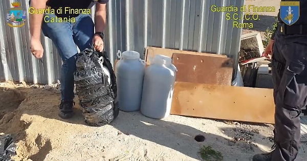 Un ingente quantitativo di denaro è stato trovato sotterrato dai finanzieri: le banconote in mazzette erano contenute in sacchi di plastica neri inseriti in alcuni bidoni di plastica e poi sotterrati.