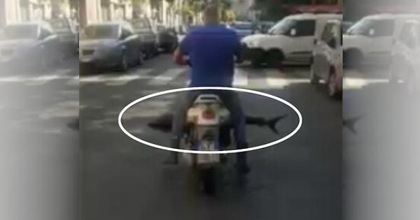 Gira sui social network questo video che riprende un uomo in scooter in via Plebiscito a Catania che circola tranquillamente per la città con un grosso pesce sulla pedana del motociclo. Chi ha girato e diffuso il video (qualcuno a bordo di una moto che si trovava subito dietro l'uomo in scooter) parla di uno squalo. Non ci è dato sapere se si tratti davvero di un piccolo squalo o di qualche altra creatura marina, dalla silhouette potrebbe anche essere uno squalo, forse pescato per sbaglio e finito su qualche banco del pesce. Certo è invece che la scena fa scattare in chi gira il video la cosiddetta liscìa catanese che permette di sdrammatizzare anche le situazioni più assurde. Il video è diventato virale ed è stato inoltrato su decine di gruppi catanesi di chat telefoniche.