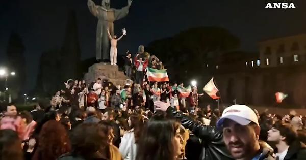Circa 300 giovani iraniani, per lo più studenti insieme a loro amici italiani, hanno celebrato "la morte di Khamenei" in piazza San Giovanni in Laterano a Roma. Musica, balli e slogan accompagnano le bandiere iraniane con il leone simbolo dello Scia' sotto la statua di San Francesco davanti alla basilica, tra risate e lacrime. Qualcuno ha issato un topo di peluche, simbolo delle proteste anti-regime delle ultime settimane.