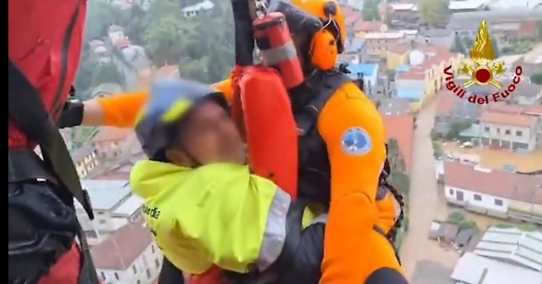 Bloccati dall'acqua alta sui tetti, salvati con l'elicottero dai vigili del fuoco