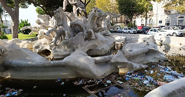 La Fontana di Proserpina a Catania come una pattumiera: lo scandalo che indigna i turisti