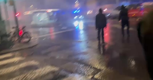 Dopo l’uso dei getti d’acqua e il lancio delle bombe carta, la situazione è degenerata in una vera e propria guerriglia urbana nel cuore della città, con la manifestazione che si è frammentata in più gruppi. Alcuni dimostranti hanno impiegato cassonetti e materiale del cantiere per la costruzione del tram per erigere barricate. Proseguono i lanci di fumogeni.