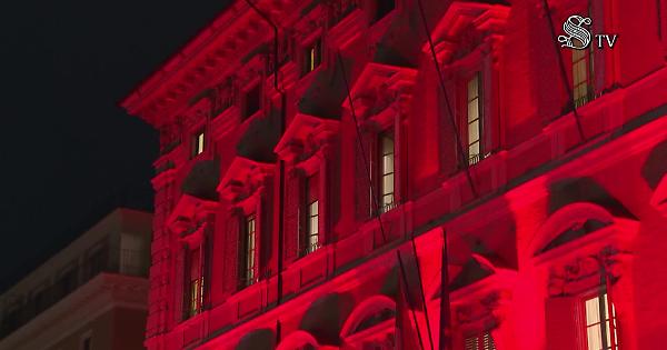 La facciata di Palazzo Madama illuminata di rosso per la Giornata mondiale contro l'Aids