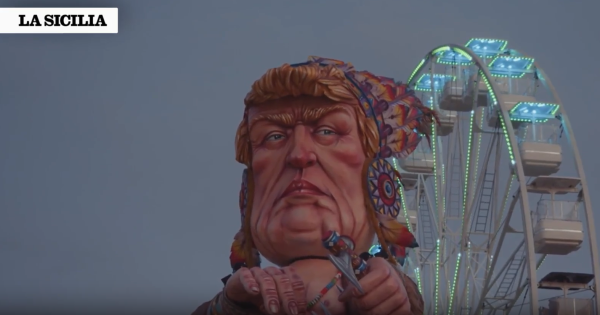 Un video documenta lo storico Carnevale di Sciacca, dove cinque carri allegorici sfilano lungo via Allende, nel circuito di contrada Perriera. I costruttori affrontano temi come l’emergenza idrica e la politica internazionale, proponendo diverse caricature in cartapesta del presidente degli Stati Uniti, Donald Trump. In uno dei carri compare Atlante, schiacciato dal peso del mondo che regge sulle spalle, piegato dalle scelte corrotte dei potenti. Dinanzi a lui si spalanca l’inferno plasmato dall’uomo, le cui soglie sono presidiate da Vladimir Putin e Benjamin Netanyahu. A sovrastare la scena si erge Donald Trump, mentre intorno la civiltà crolla tra templi infranti e speranze incatenate. Nel secondo carro, il presidente americano indossa i panni del capo tribù Toro Seduto e, deciso a riportare l’America allo splendore di un tempo, protegge la propria “tribù” dagli stranieri tentando di imporre dazi alle popolazioni vicine.