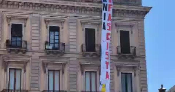 Alla partenza del corteo del 25 aprile di Catania, viene srotolato uno striscione «Catania antifascista» dal terrazzo della storica sede del Movimento sociale italiano.