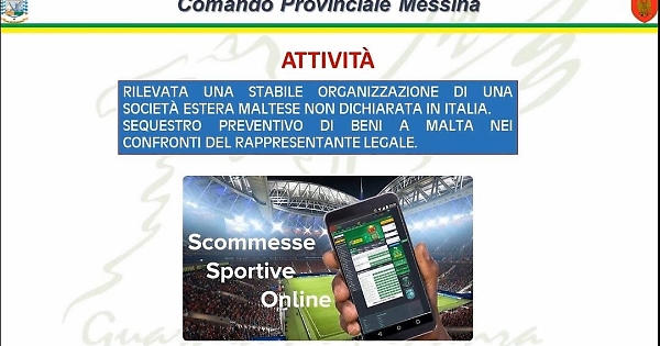 La Guardia di Finanza, ha eseguito, a Malta, un decreto di sequestro di beni del valore di 3,5 milioni di euro, nei confronti del legale rappresentante di una società maltese che secondo le indagini aveva stabilito, a Messina, una stabile organizzazione che avrebbe esercitato abusivamente l’attività di raccolta delle scommesse on line e che non avrebbe dichiarato ricavi per 85 milioni di euro.