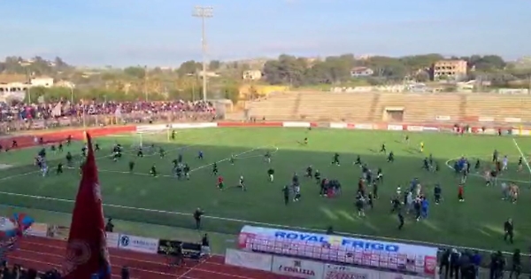 Il fischio finale della partita Canicattì-Catania che - in forza del 1-4 finale - sancisce la promozione in Serie C del Catania Ssd e la successiva invasione di campo dei tifosi rossazzurri presenti allo stadio di Pian del Lago a Caltanissetta (video Lorenzo Maugeri).