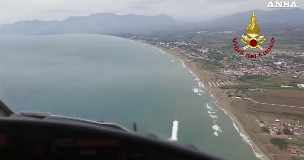 Risulta ancora disperso l'aereo da turismo partito domenica pomeriggio dalla pista di Castelvolturno (Caserta) dove pero' non ha piu' fatto ritorno facendo scattare l'allarme. A bordo del velivolo il solo pilota, che risulterebbe essere un 67enne appassionato di volo decollato per effettuare una prova tecnica, dirigendosi inizialmente verso il mare lungo la rotta che unisce le isole di Ischia e quella di Ventotene, dove lo stanno cercando da ieri pomeriggio i soccorritori. Le ricerche sono proseguite anche durante la notte, con l'ausilio di un aereo della guardia costiera equipaggiato con attrezzature per il rilevamento ad infrarossi, ma sino a questo momento del bimotore nessuna traccia. Nelle immagini, le operazioni di ricerca condotte dai vigili del fuoco a bordo di un elicottero.