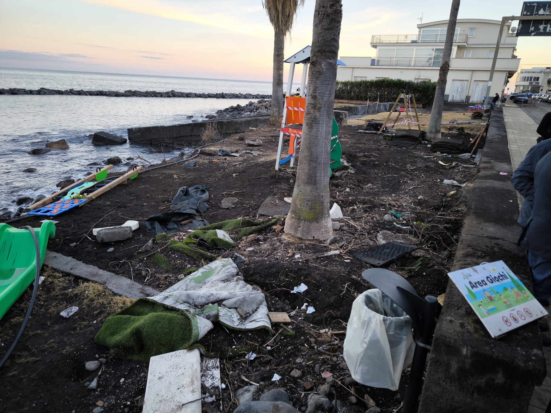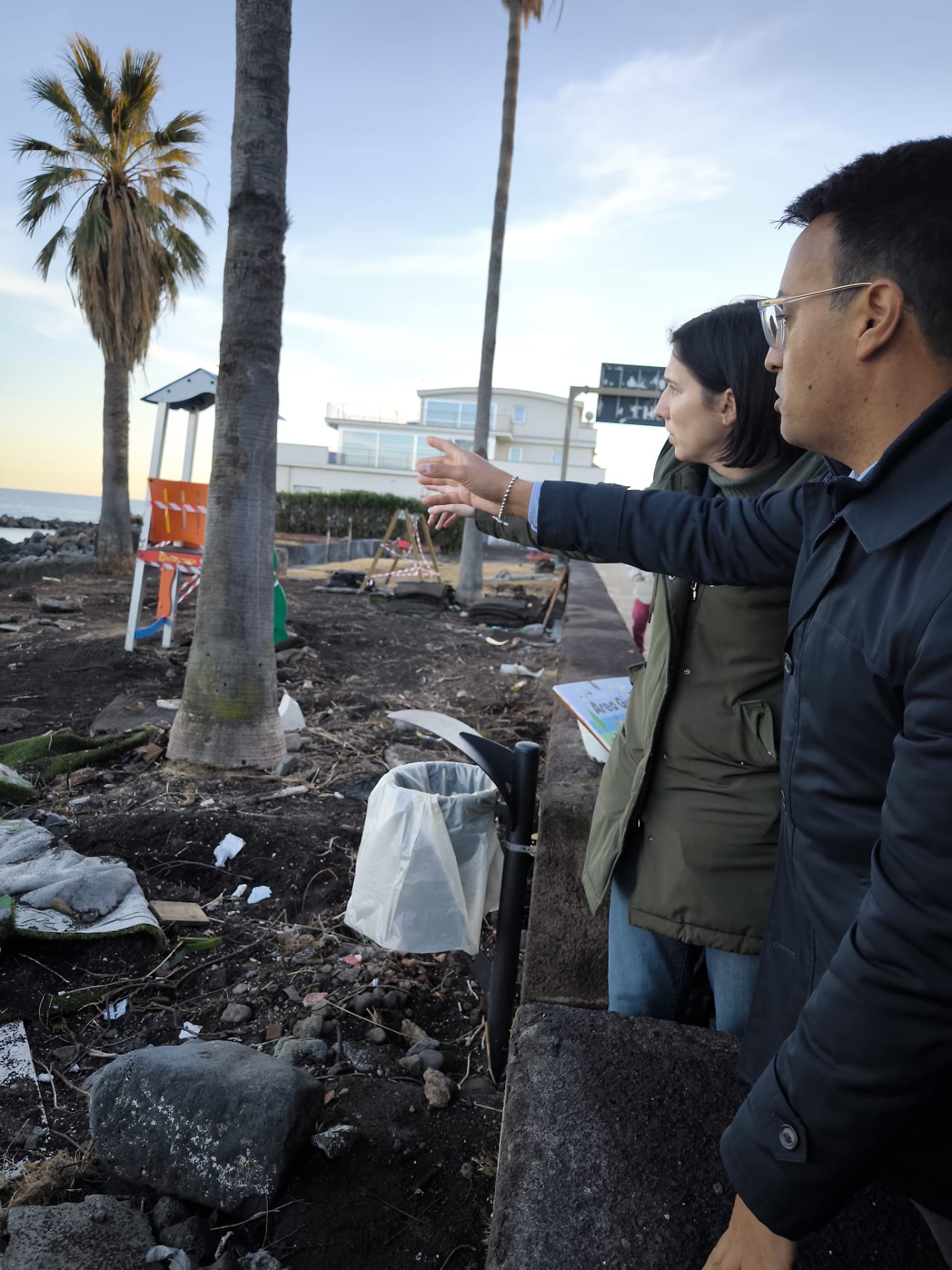 Tappa sul lungomare, davanti al piccolo parco giochi inaugurato in estate e devastato dal ciclone. E poi al porto dove si stimano necessari interventi per 10 milioni di euro