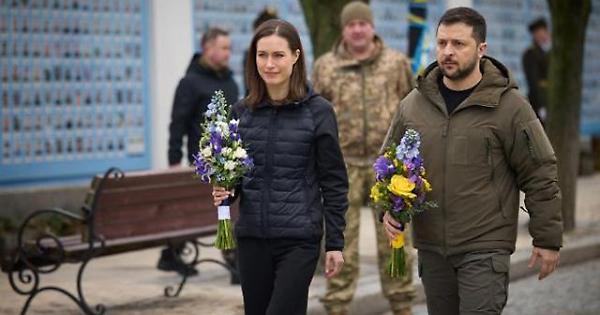 Sanna Marin in visita a Kiev depone i fiori al Muro della MemoriaLa premier finlandese accolta dal presidente Zelensky