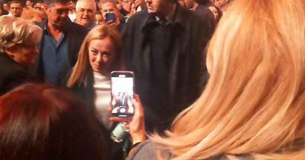 Meloni allo spettacolo di Checco Zalone. Il comico: «Ha preferito me al karaoke con Macron»