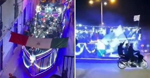 Notte di follie e stranezze per lo scudetto del Napoli: a Mugnano passa una nave per stradaNella cittadina, a nord del capoluogo campano, un vascello a ritmo di musica