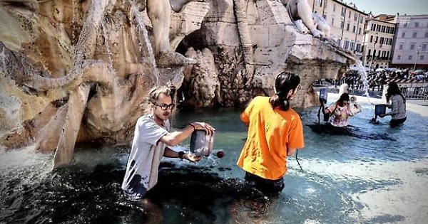Roma, Ultima Generazione colora di nero l'acqua della Fontana del Bernini