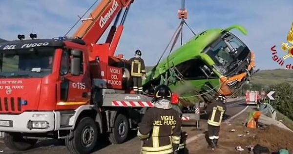 Avellino, bus precipita in una scarpata: il video del recupero con la gru. L’incidente è avvenuto alle 4 del mattino a Vallesaccarda. Coinvolte altre tre autovetture: 1 morto e 14 feriti
