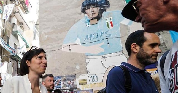 Elly Schlein visita il murale di Maradona ai Quartieri Spagnoli