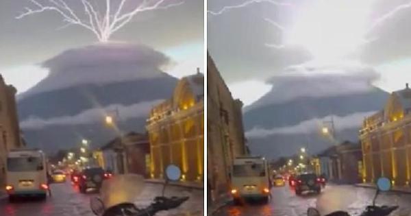 Le immagini della tempesta di fulmini che si è abbattuta sul cratere del vulcano Acatenango, in GuatemalaUn motociclista si è fermato per immortalare in video il raro fenomeno atmosferico