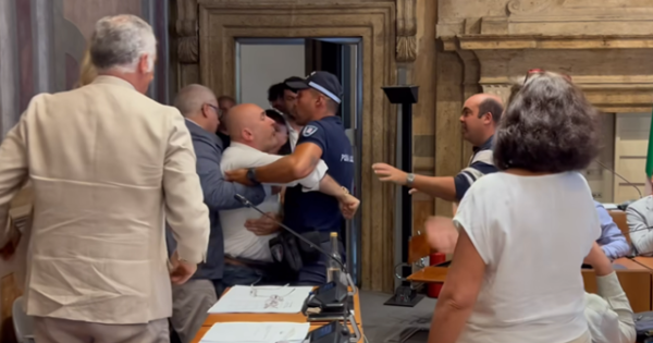 Terni, il sindaco Bandecchi prova a mettere le mani addosso al consigliere dell'opposizione: sfiorata la rissa