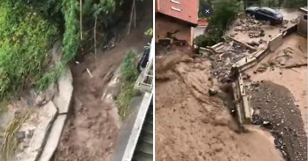 Frana a Blevio, nel Comasco: la strada è invasa da detriti, fango e terra