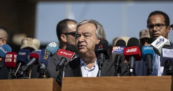 Guterres al valico di Rafah: «I camion carichi di aiuti sono un'ancora di salvezza per i palestinesi»