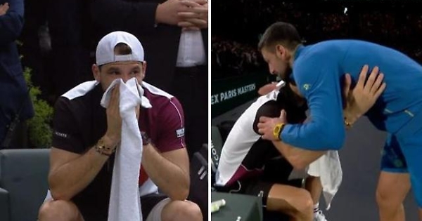 Djokovic interrompe l'intervista e consola Dimitrov in lacrime dopo la finale Parigi-Bercy